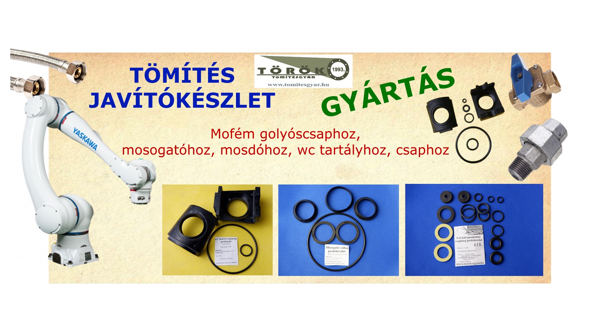 Márkák/Típusok: MOFÉM tömítés, Dömötör WC alkatrész, KMT csaptelep javítás, félfordítós öblítő szelep tömítés.