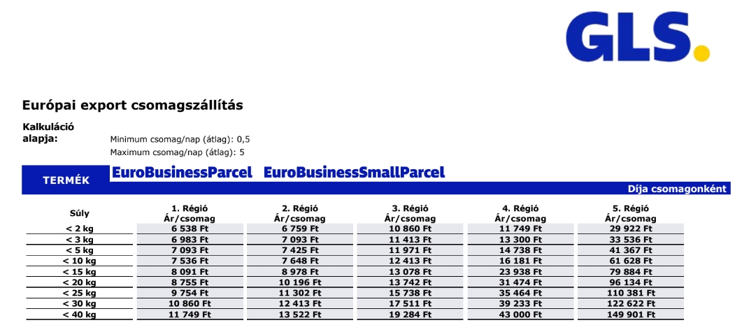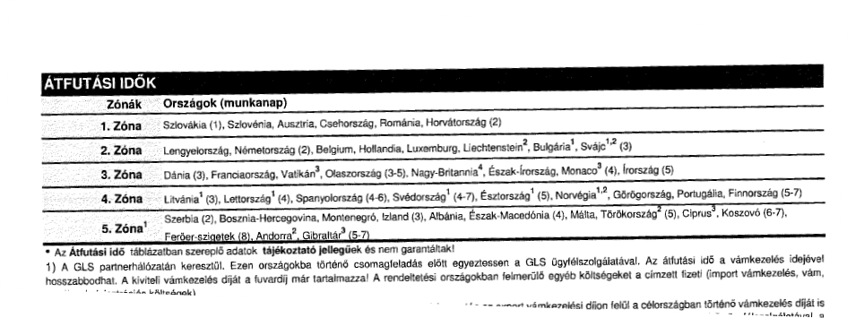 Külföldre a szállítási díjat lentebb található táblázat szerint tudja ellenőrízni.