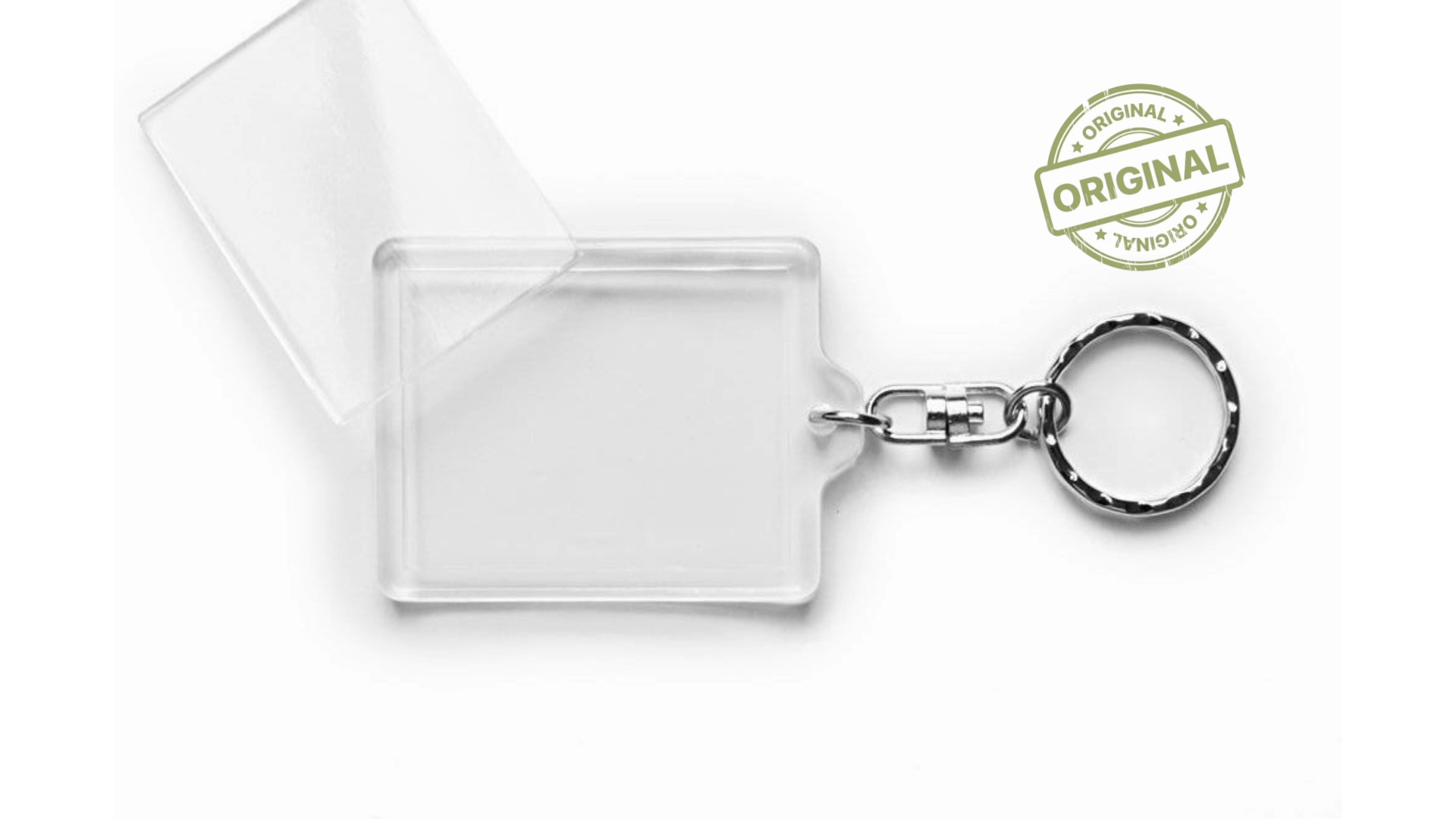 Fényképtartós, akril kulcstartó 35 x 45 képméretű forgó lánccal szerelt.