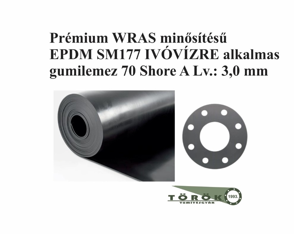 Az SM177 típusú gumilemez kifejezetten vízművek, vízügyi hálózatok és ivóvízzel érintkező berendezések tömítési feladataihoz készült. Az extra 1500 mm-es szélesség lehetővé teszi a gazdaságos anyagfelhasználást, különösen nagyobb átmérőjű karimatömítések gyártása esetén.